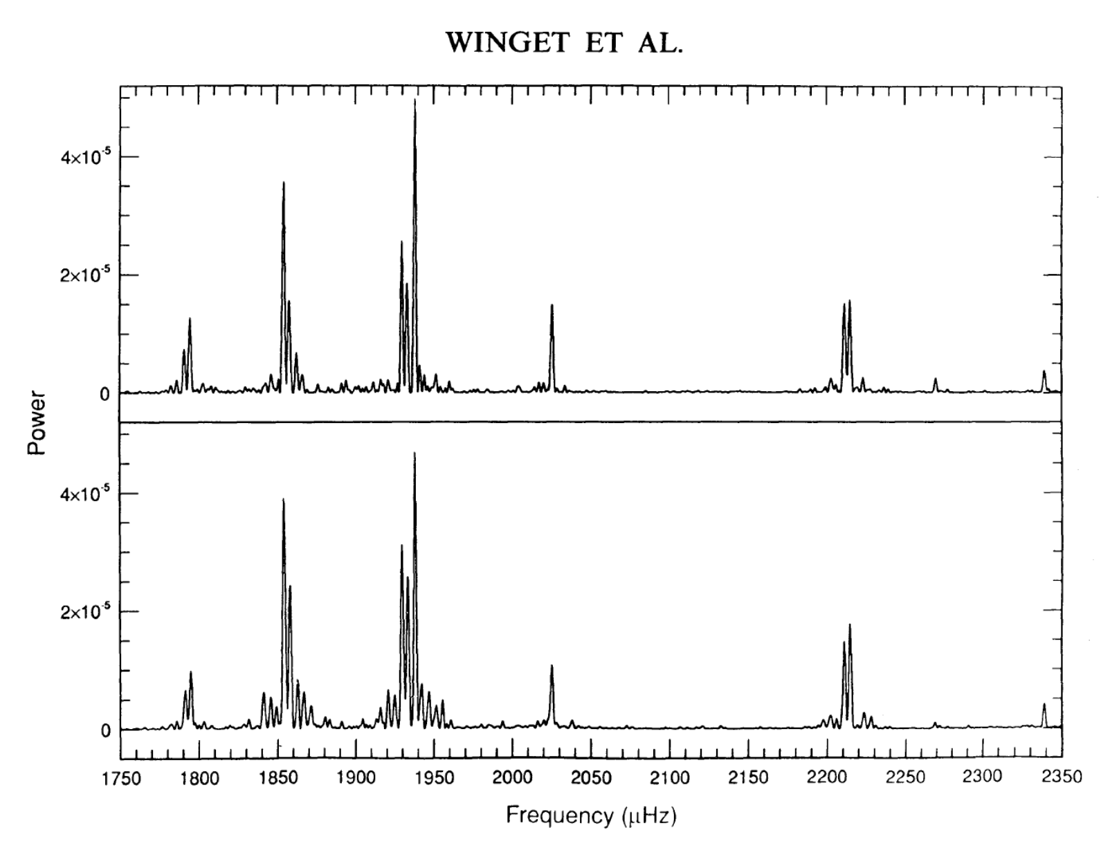 The frequency spectrum for a pulsating white dwarf looks like this: