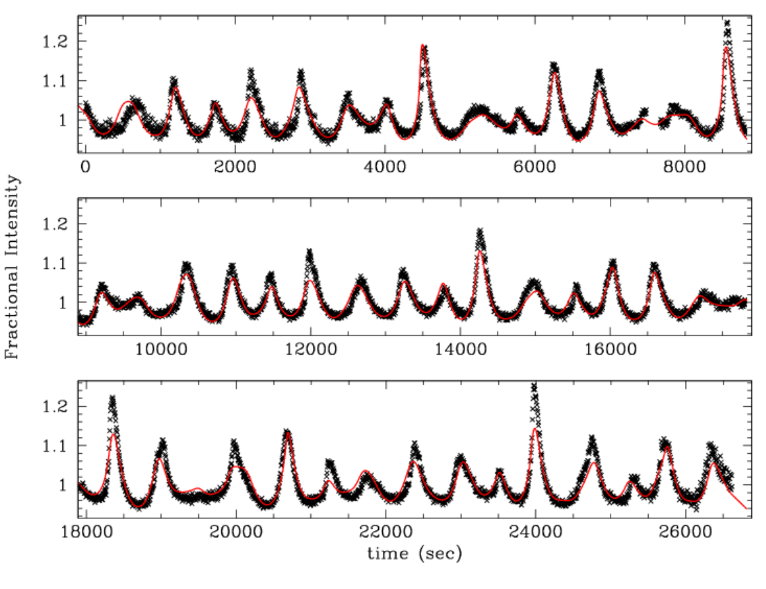 This is a light curve for a pulsating white dwarf. Now, it kind of looks kind of like our sound waves, doesn't it? It's only plotted over a larger time-range.